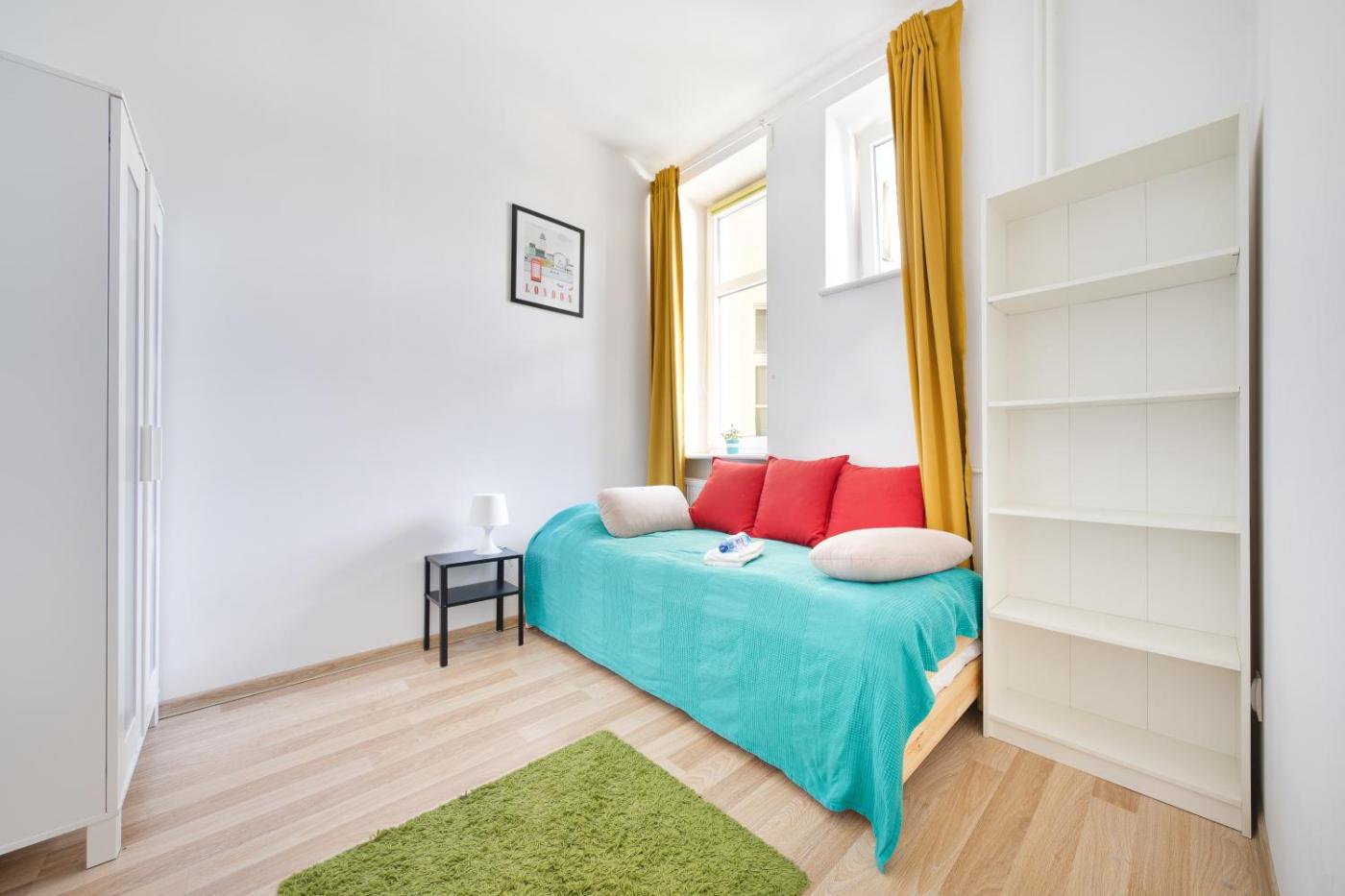 Pokój Jednoosobowy typu Budget. The single room provides a washing machine and a tea and coffee maker, as well as a shared bathroom featuring a walk-in shower. In the well-fitted kitchen, guests will find a stovetop, a refrigerator, a dishwasher and kitchenware. Rooms on the upper floors are reachable by lift. The unit offers 1 bed. Pokój Jednoosobowy - 1 osobowy. Powierzchnia pokoju ok.: 9 mkw.