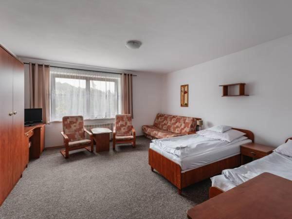Pokój dwuosobowy z prywatną łazienką. This double room features a private bathroom, a dining area, a wardrobe as well as a terrace. The unit offers 3 beds. Pokój Dwuosobowy - 4 osobowy. Powierzchnia pokoju ok.: 24 mkw.