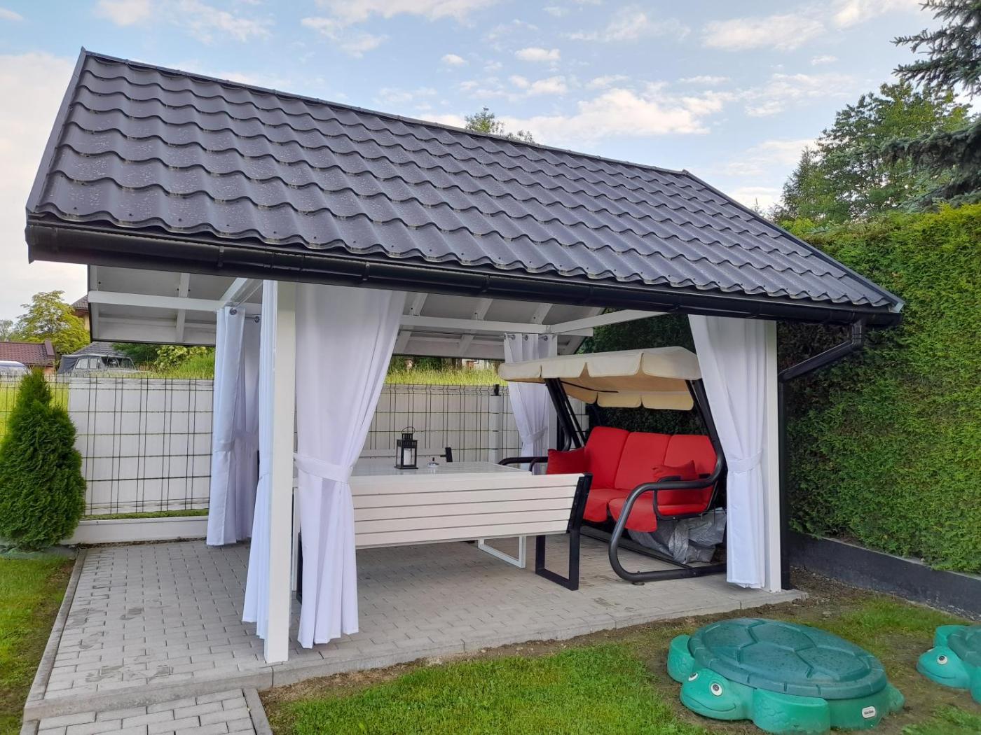 Dom z 2 sypialniami. The holiday homes kitchenette is available for cooking and storing food. Boasting a terrace with garden views, this holiday home also features heating and a flat-screen TV. The unit has 6 beds. Dom wakacyjny - 9 osobowy. Powierzchnia pokoju ok.: 80 mkw.